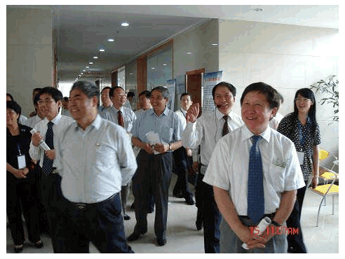 科技部曹健林副部长、中科院施尔畏副院长等领导在南京大学洪银兴书记陪同下视察研究院