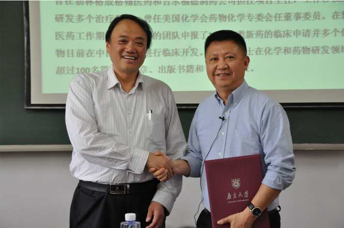 5月8日下午,由常州南京大学高新技术研究院/江苏省产业技术研究院医药生物技术研究所(简称省产研院医药所)等单位发起的“健创汇”生物医药创新创业系列讲座第八讲在南京大学仙林校区开讲。本期课程的特邀授课嘉宾是南京药捷安康生物医药创始人、中山大学药学院特聘教授吴永谦博士,省产研院医药所所长华子春教授主持讲座。作为本期的推介嘉宾,南京大学研究生院副院长朱俊杰教授向大家简单介绍了吴永谦博士学习和创新创业经历,并向吴永谦博士颁发了“创新创业课程授课嘉宾”证书。