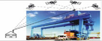 采用厘米级精度的GPS接收器,在码头的数字 化堆场中确定轮胎吊的位置坐标和行驶偏差实 现箱位管理、自动驾驶和碰撞防止等功能。